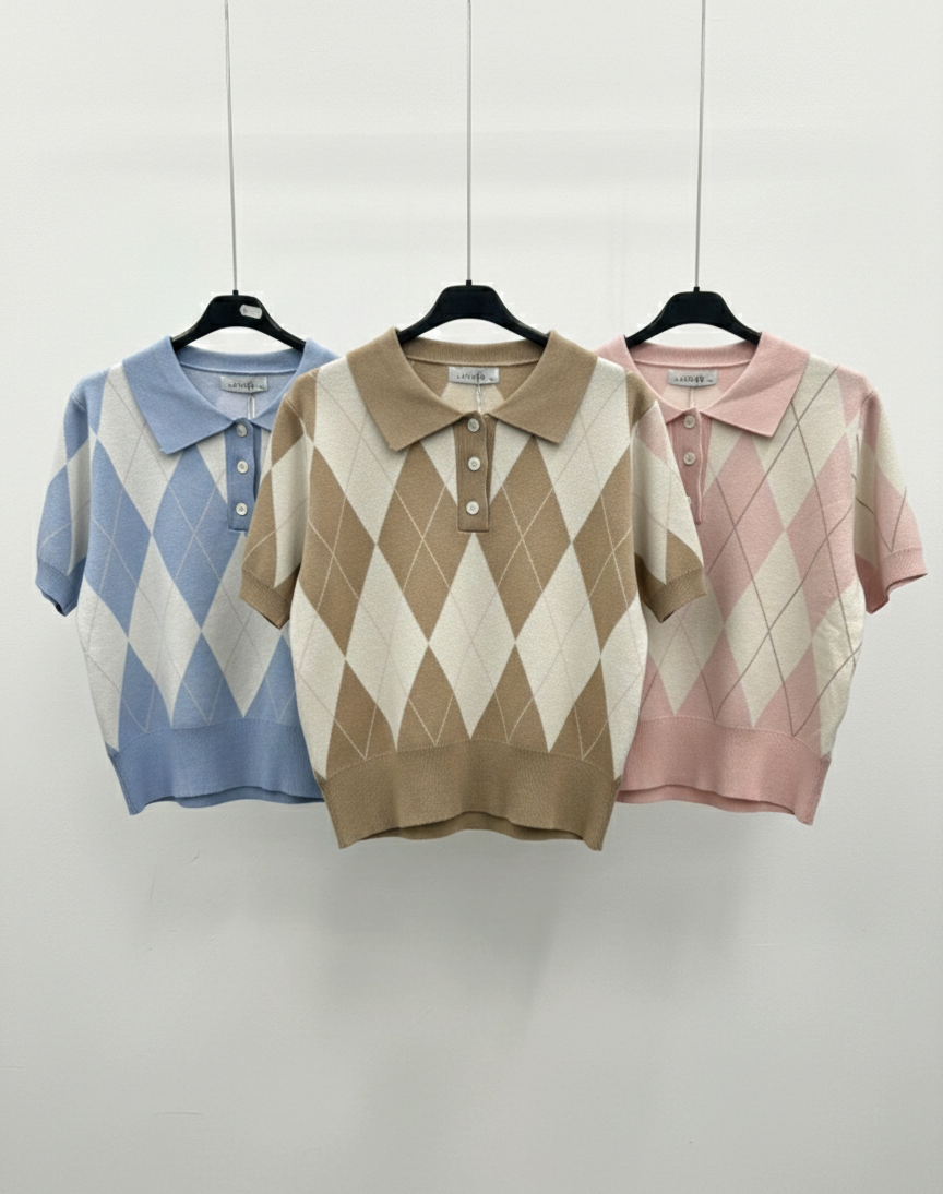 Papildyk savo garderobą modernia megzta polo palaidine. Minkštas audinys, laikui nepavaldus rombų raštas ir patogus kirpimas užtikrina stilių ir komfortą kiekvieną dieną.